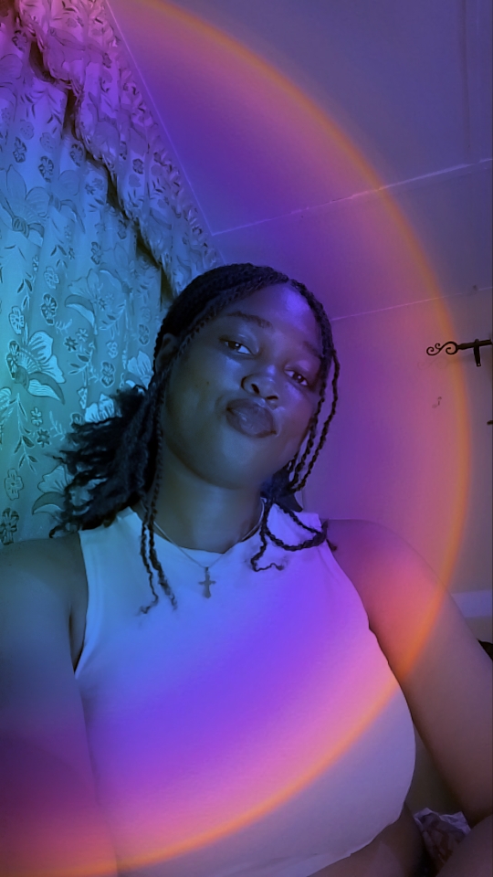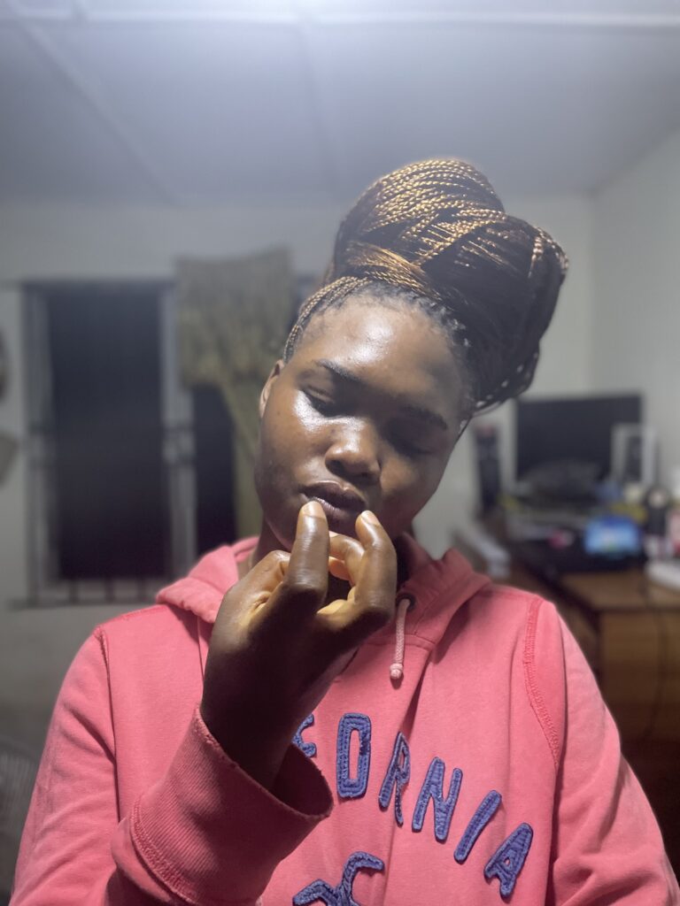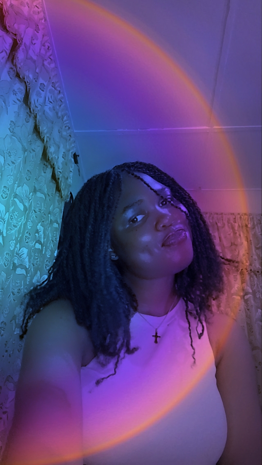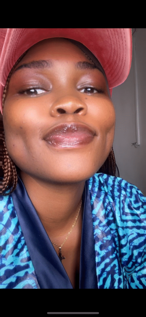 There’s this thing she does where she’s completely professional and put-together, running meetings and creating content ideas and all like the boss she is, and then she’ll hit you with something so unexpectedly playful it reminds you she’s never just one thing. She’s layers—purple-tinted, coconut-scented, tech(tola)-savvy layers. The kind of woman who’ll fix your social media strategy and your mood in the same conversation.